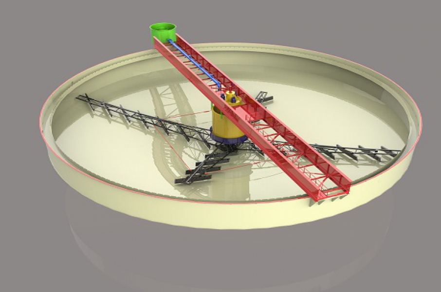 The main characteristic of the central transmission type concentrator is to add a certain amount of flocculant to the slurry to be concentrated, so that the mineral particles in the slurry form flocs, accelerate their settling speed, and thus achieve the goal of improving concentration efficiency.