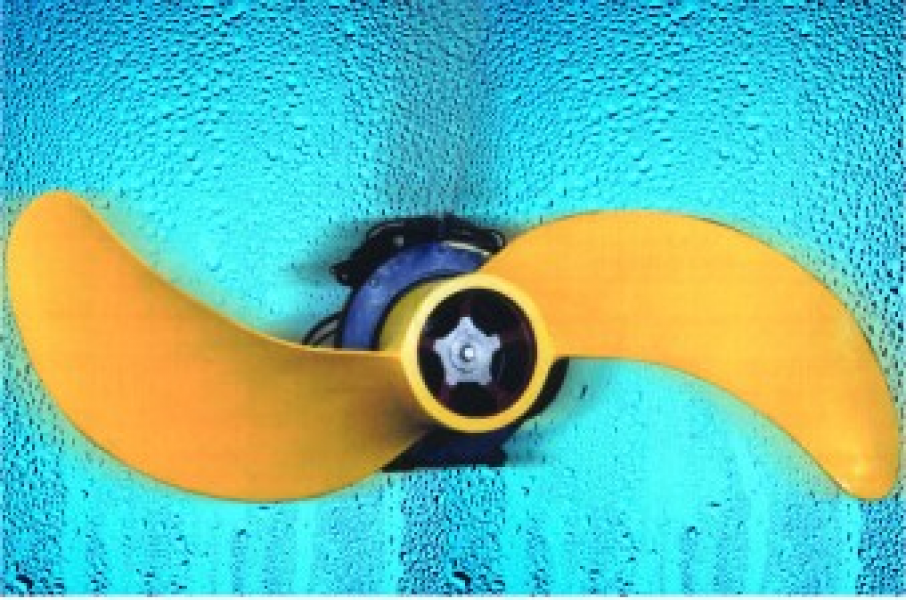 e、 The two blade high thrust, self-cleaning impeller is made of high-strength and corrosion-resistant fiberglass processed as a whole, which is lightweight and has good strength. Under certain input power conditions, it can obtain a large water flow thrust.